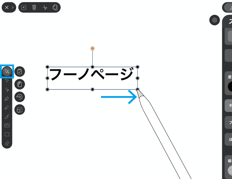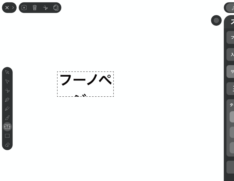 ここではテキストボックスを選択した状態で紹介しますが、テキストツールでタイピングをしている状態でもエディットは可能です。