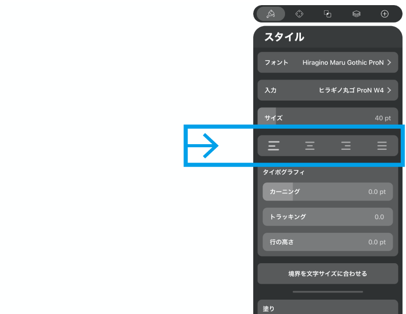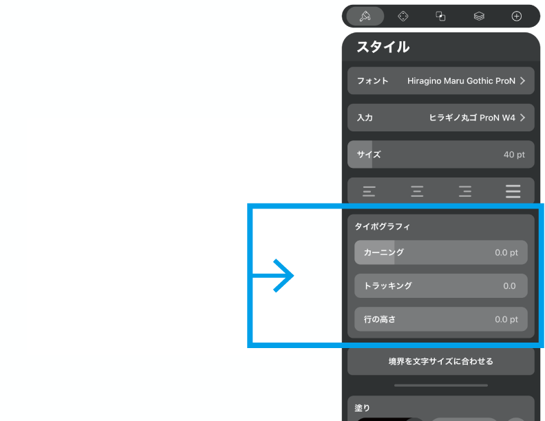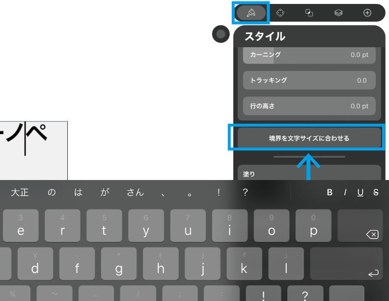 その時はスタイルタブの「境界を文字サイズに合わせる」をタップ。