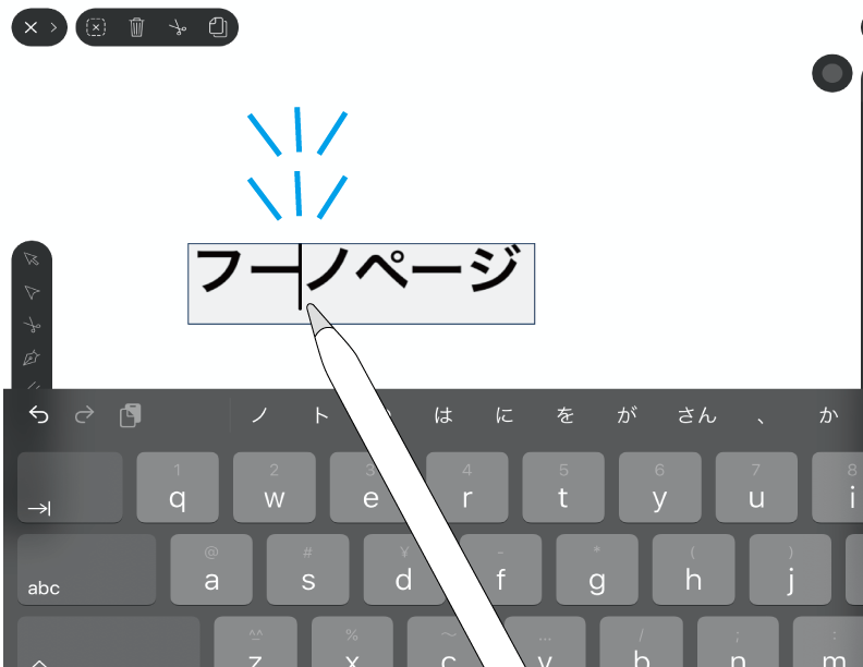 ボックス作成後に自動的にキーボードが表示され、タイプするとエリア内にテキストが入力されます。