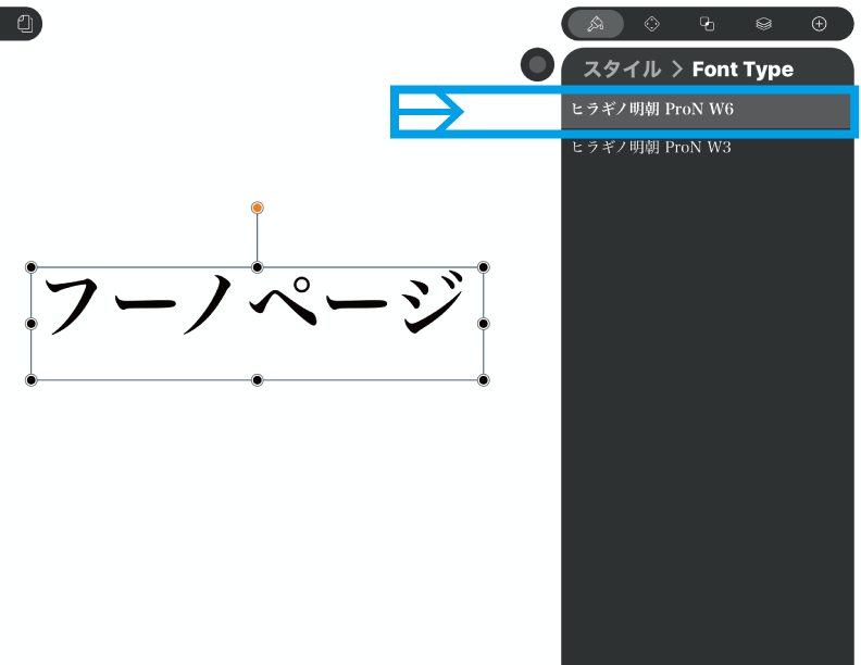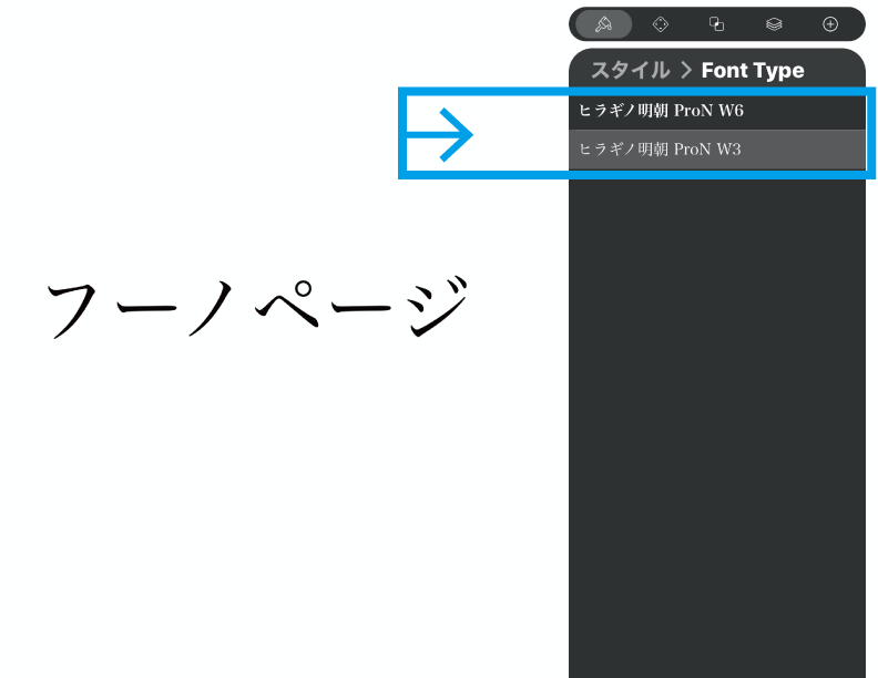 画像は「Hiragino MIncho ProN」フォントの書体一覧です。W3、W6、の2種類から選べますね。