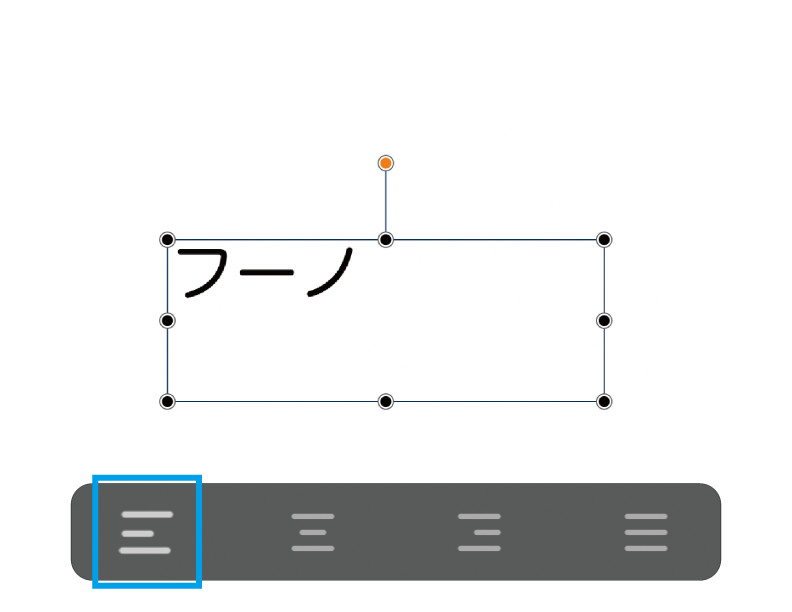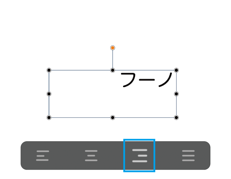 アラインメントで、テキストボックス内における整列状態を調整します。