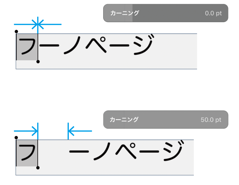 カーニングは、隣り合う文字の間隔を個別で調整します。
