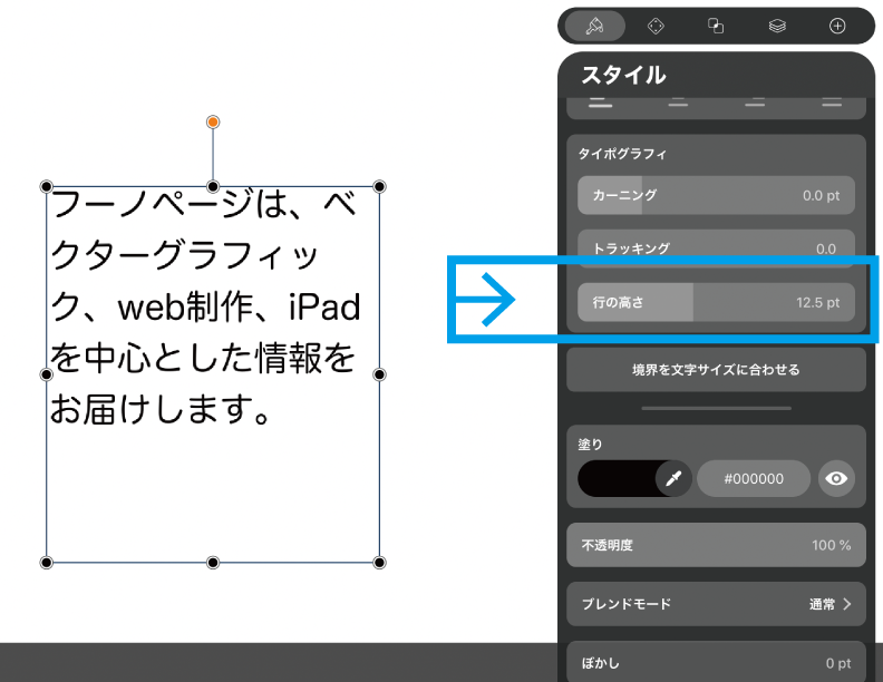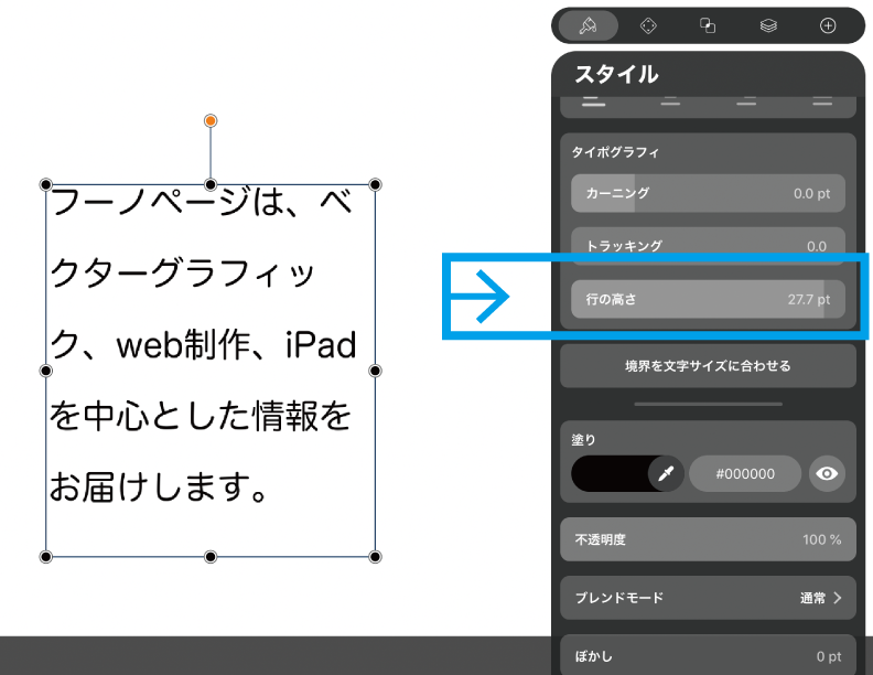 イラレの文字ツールが文字をタイプするのに対し(「文字ツール」、英語表記では「タイプツール」となります)、Vectornatorのテキストツールはテキストボックスを配置します。