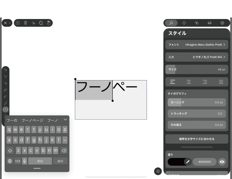 Vectornatorではロゴ作りなどの用途が主となるので長文をタイプする機会は少ない。したがって、ソフトキーボードでの入力で十分だと思っていましたが・・