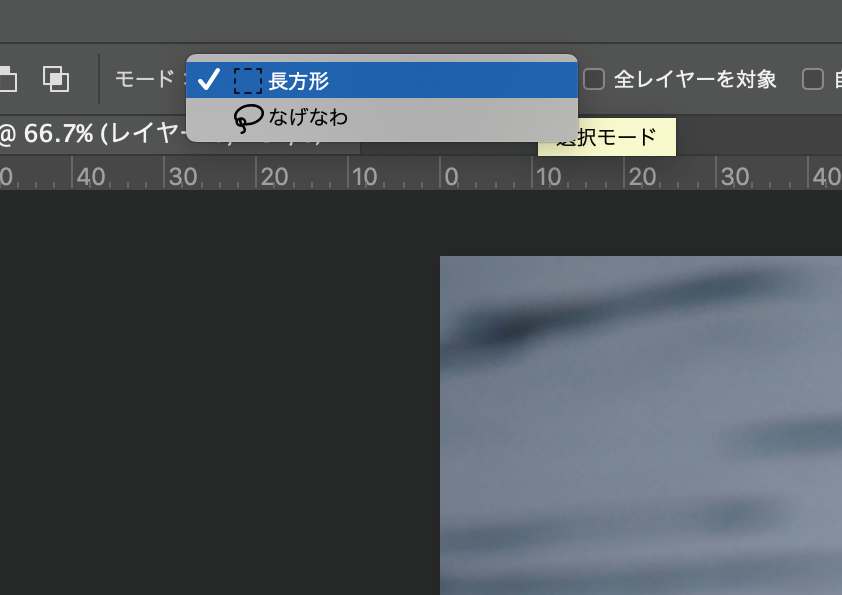 デフォルトでは長方形ドラッグでの選択ですが、画面上部にある「モード」をクリックすると、投げ縄形式での選択もできます。
